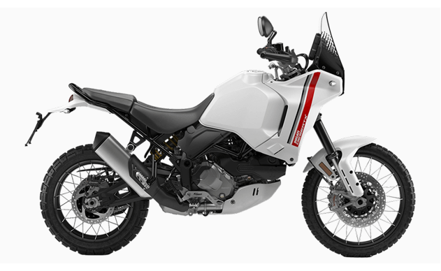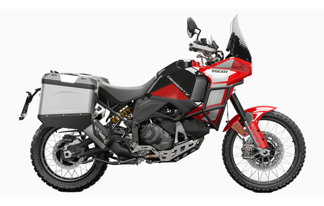 The DesertX Discovery trim includes a dedicated Thrilling Black and Ducati Red livery created with adhesive graphics to protect surfaces from scratches and a comprehensive package of standard accessories to make it even better suited to exploration.