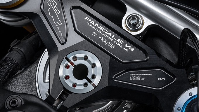 The Panigale V4 Tricolore Italia stands out with an exclusive livery inspired by the Desmosedici GP24 that gave a historic one-two in the Italian Grand Prix.