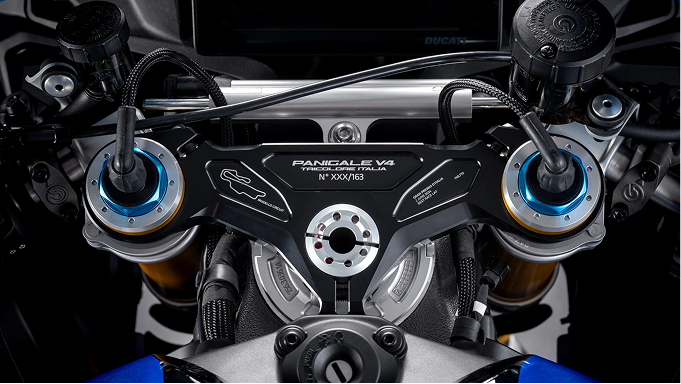 The exclusive Light Blue color scheme celebrates the dreams and successes of Italy in sports. The Panigale V4 Tricolore Italia is a true collector's item. The bike is produced in only 163 units, a number that pays homage to two-time MotoGP world champion Francesco Bagnaia.