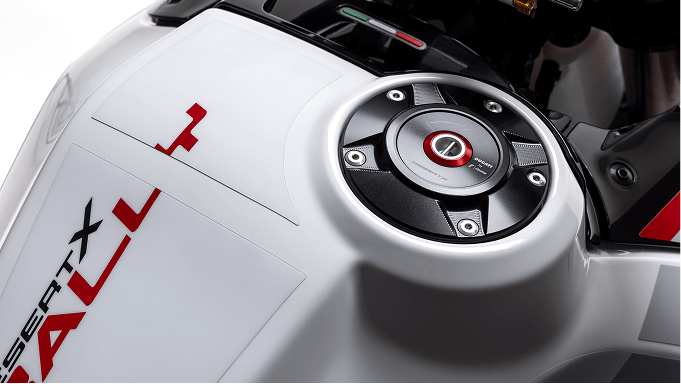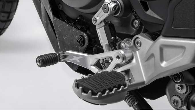 Along with a lightweight and durable forged carbon fiber oil pan guard and solid aluminum shift and rear brake levers, clearly identify the Rally as a motorcycle designed for the most extreme adventures.