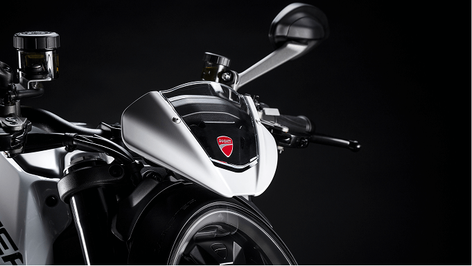 The full LED headlight maintains the iconic Monster circular shape and is brought even more up to date with the bright signature of the DRL.