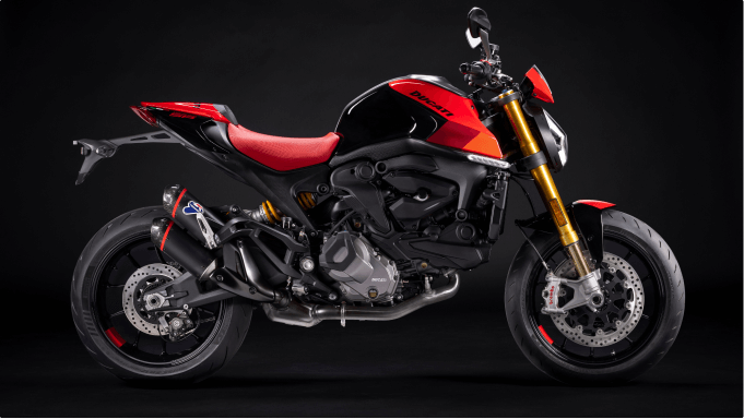 The livery, which incorporates the 2022 colors of the factory team's Desmosedici GP, reinforces the sporty nature of the new Monster SP.