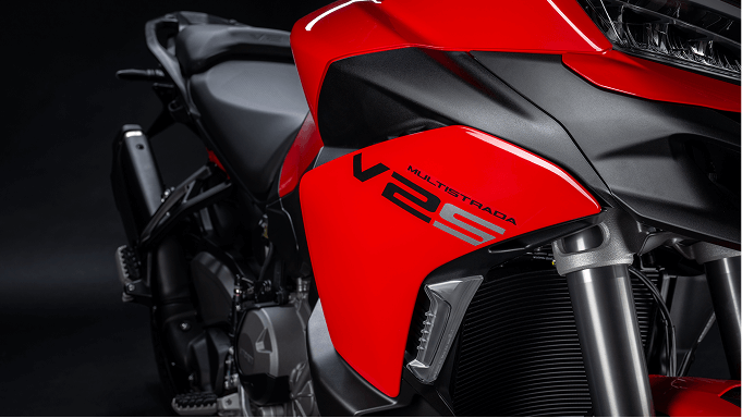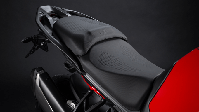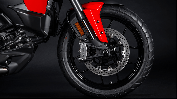 The LED front light set offers greater visibility thanks to the new headlight and distinctive DRL. Inspired by the Multistrada V4 and the new Panigale, this design does not only improve the lighting but adds a more aggressive and dynamic touch to the front end.