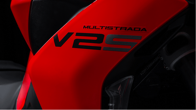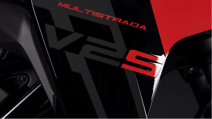 The design of the new Multistrada V2 adopts the typical family proportions, with a balanced, horizontal volume that gives the bike a solid, dynamic look.
