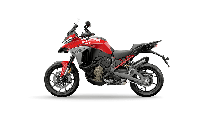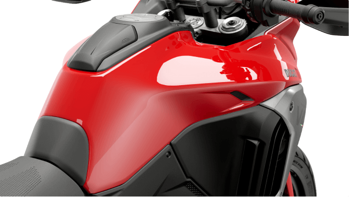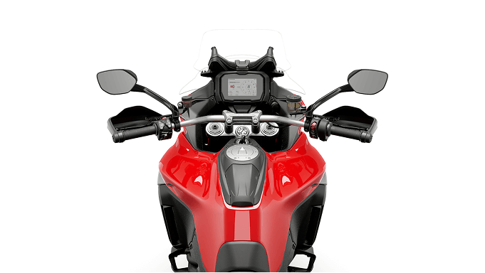 Multistrada V4 retains the style elements for which all Multistrada models stand out: front-loaded mass, a very sleek rear section, and an ultra-compact front end, ‘crossover’ elements inspired by the style of Ducati Superbikes, from the 916 on. Its look combines elegance and robustness with a marked off-road attitude of adventure and travel.