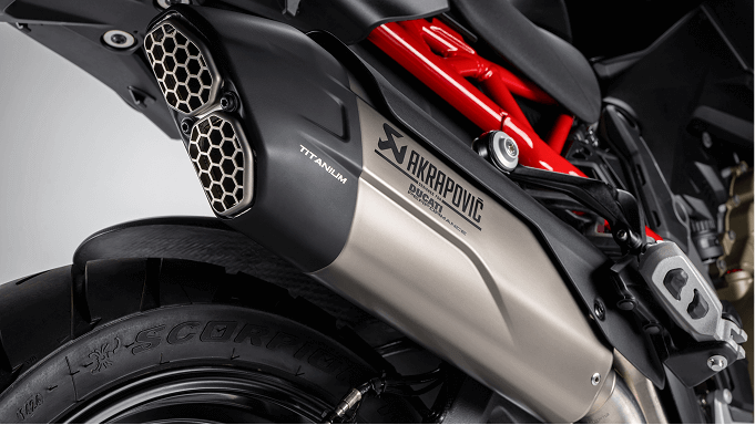 Multistrada V4 exhaust flaunts tauter lines, complementing the slender profile of the tail section. The aggressive looking silencer produces an even more unique sound, amplifying that typical Ducati sports attitude.