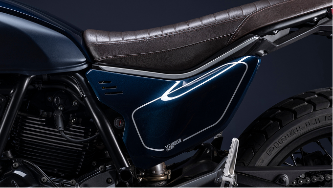 The new distinctive Nebula Blue color, the brown seat with dedicated finish and the full-black spoked wheels give Nightshift its decidedly street-glamour look.
