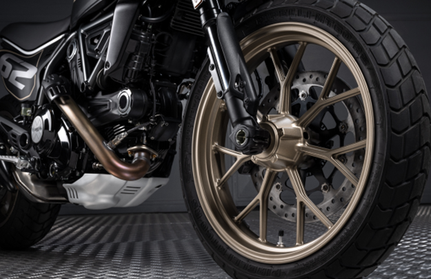 Every detail reinforces its racing spirit while staying true to its Scrambler® roots. A blend of post-heritage aesthetics and modern features, like bronze-colored wheels and a sleek racing silhouette, makes the new Full Throttle a statement in motion.