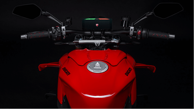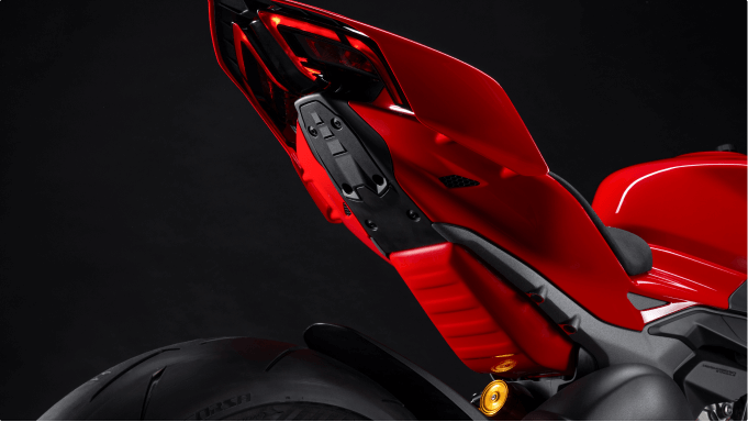 The new Streetfighter V4 offers greater rider comfort with more longitudinal room, a thicker seat and two ducts integrated into the side panels. These elements divert hot air away from the legs, improving thermal comfort and ensuring excellent control even in the most intense riding conditions